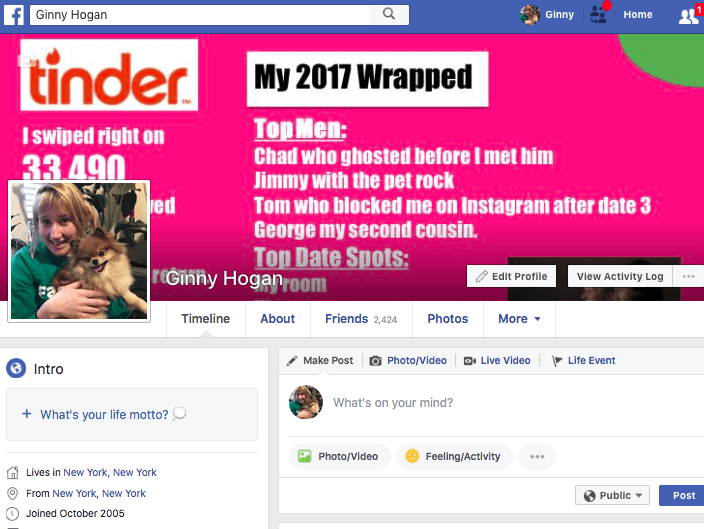 - You typed a man’s name as your status when you meant to type it into the search bar.