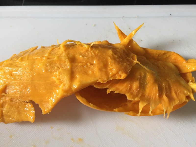 I did some researched (found this vaguely disturbing propaganda website) and discovered that an alternate name for this fruit is Ataulfo. Apparently it’s the result of crossbreeding of different kinds of mangoes in the Chiapas region of Mexico. Cool, but on the other hand: who cares? I don’t need to know anything about Champagne mangoes, I just need to eat them.