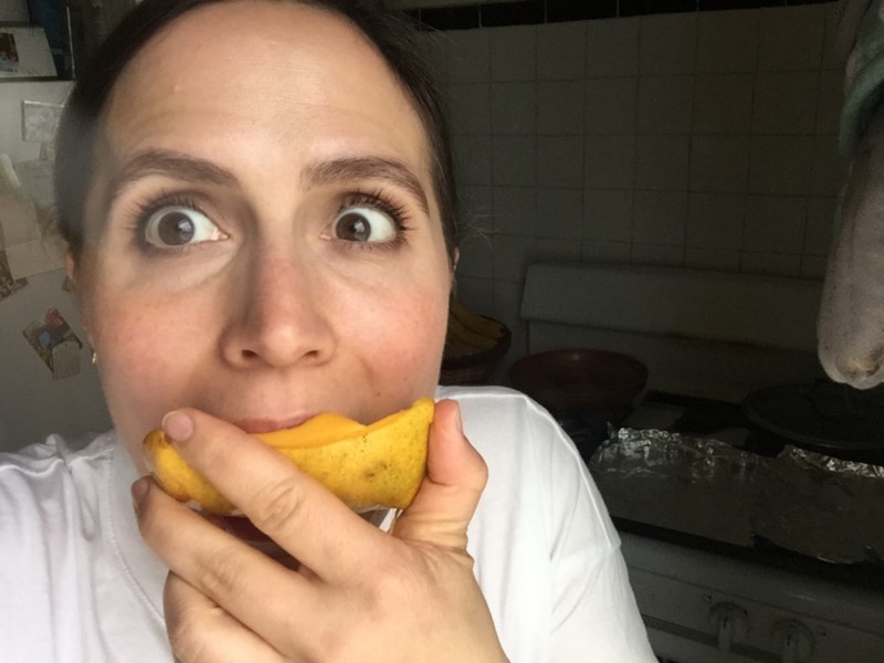 I’m not ready to think about the end of my love affair with Champagne mangoes, however, and I don’t have to yet. I bought several this week and they were unsurprisingly perfect, so I recommend you run to your nearest Whole Foods (365) and grab a bunch while you still can. You won’t be disappointed — unless you are, in which case you have a shitty palate, which is your fault (or your parents’. I’m not sure how palates work). I, for one, will be stuffing my face with firm, sweet flesh until I have orange juices dripping down my face for as long as fucking possible.