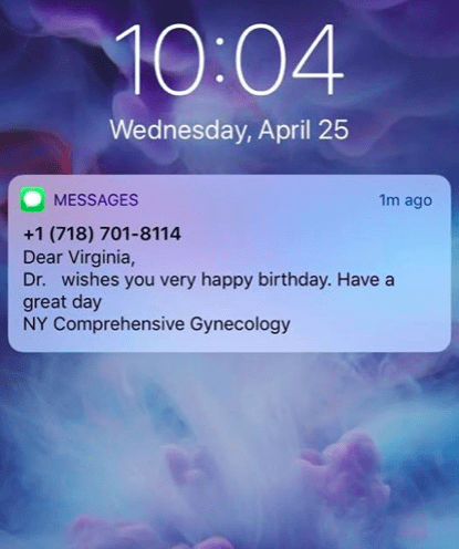 I use the counts Facebook gives me. This double-counts people who write multiple times, and it also includes any wall post on April 26th as a Happy Birthday post. I stopped counting when April 26th ended on the West Coast, so your belated Happy Birthdays mean NOTHING TO ME. You’re dead to me, motherfuckers. I also don’t count ‘Happy Birthday’ texts, not even this charming one from a gynecologist I went to once for an STD test: