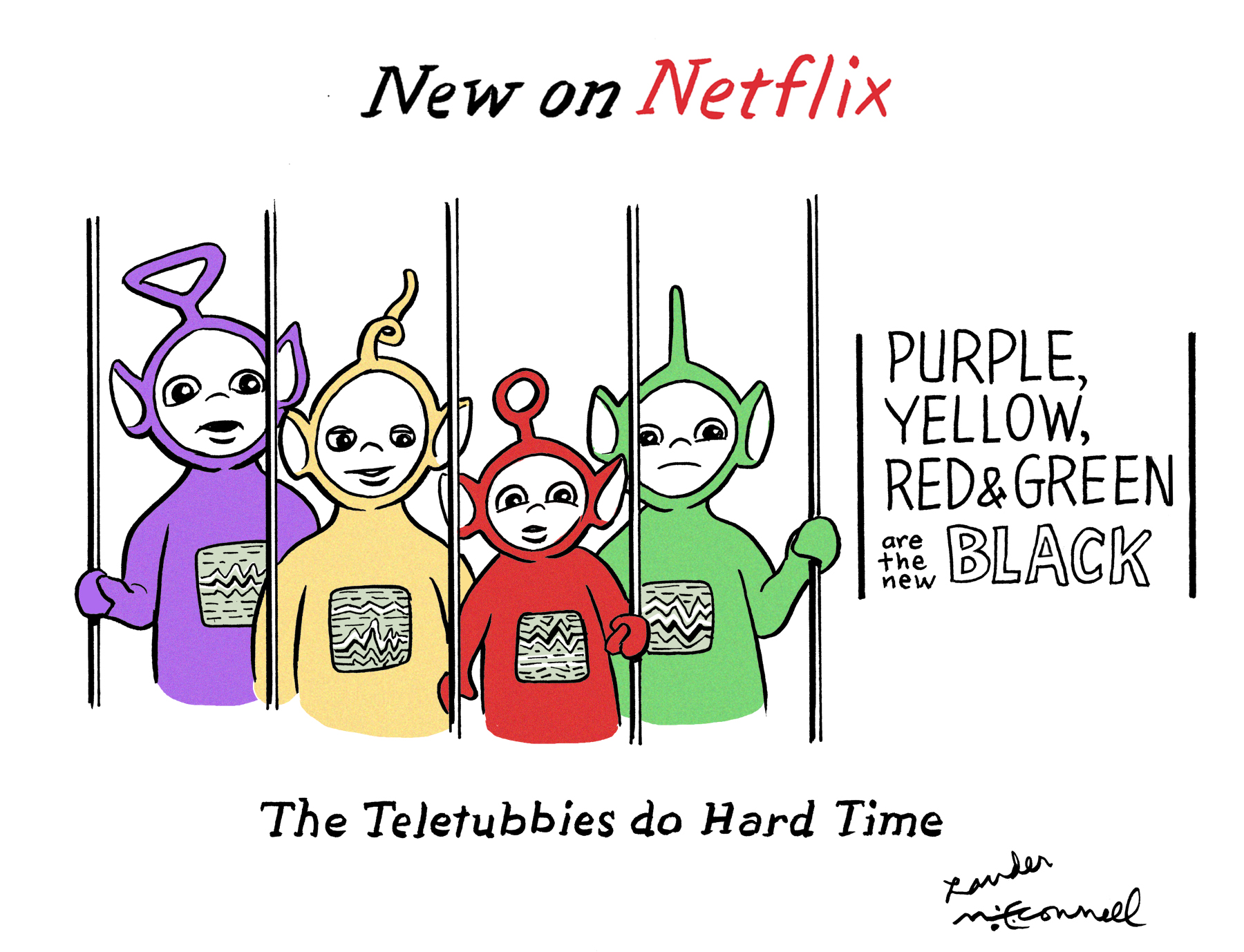 July 29, 2019July 23, 2019 Little Old Lady Contributor The Teletubbies Do Hard Time by Paul Lander and Dan McConnell Share this: Share on X (Opens in new window) X Share on Facebook (Opens in new window) Facebook Like Loading... Related