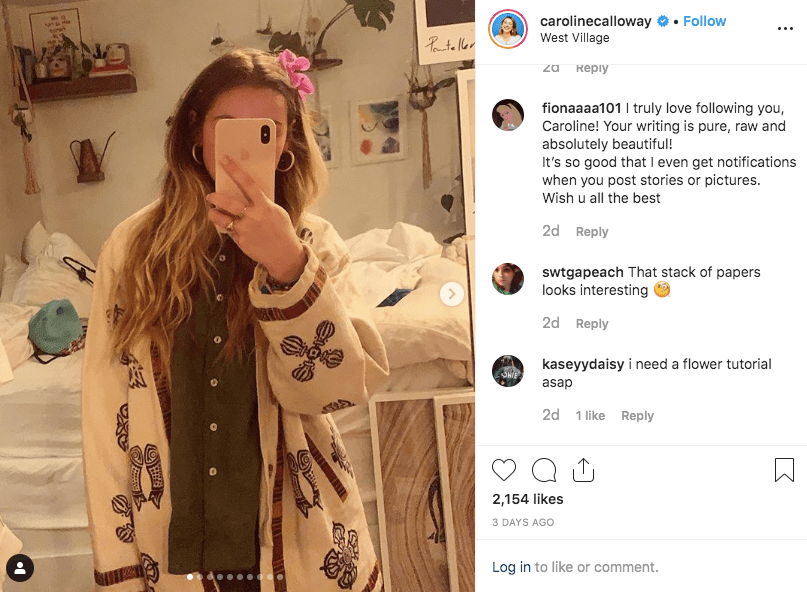 I lazily deliver spoonfuls of Trader Joe’s vanilla Icelandic yogurt to my mouth while reading the newest CC article, this one by Teen Vogue (CC advertised it minus the “Teen” part… a misleading queen whom I nonetheless will follow to my death!) She doesn’t like the way she is portrayed. I make a fake gmail account and begin cyber bullying the “journalist”, as Caroline refers to her. If against my sweet orchid-clad influencer you illustrate ill intended moxy, then sorry sweetie… you gon get doxxied! 🙂