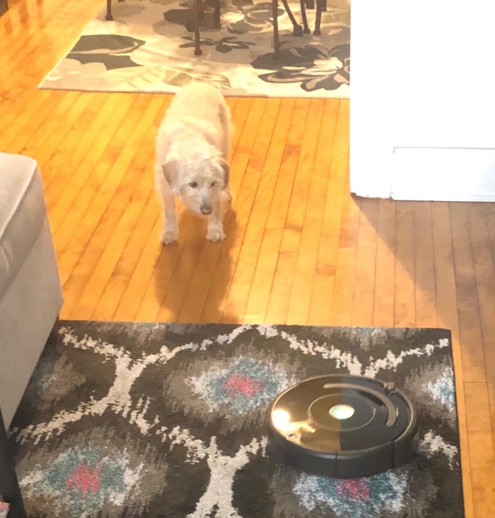 Again, we battled. Me, barking and growling, following it around the house. Roomba was clearly scared; it tried to ignore me. Or so I thought. But then it suddenly changed directions and was headed right for me, making that terrible, terrible noise. I was forced to scamper back quickly – a move I will admit was unbecoming for a dog of my tested bravery when confronting piles of leaves, distant birds and delivery people on the other side of the door.