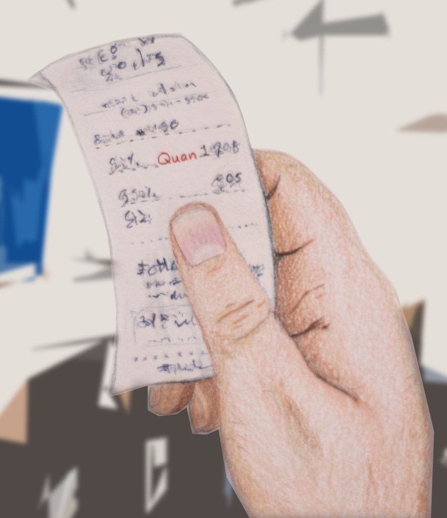 I was jarred out of my fantasy by an errant elbow to my shoulder. The minuscule woman who delivered it apologized profusely. I had been too engulfed in my fantasy life with Quan that I hadn’t noticed the second leg of the dinner rush was in full swing. The waiting area was practically bursting at the seams and the air had become humid and thick. All of us sitting and waiting in our own little worlds, our minds escaping to other, happier places. I’d completely forgotten about my Alzheimer’s diagnosis, which in itself is concerning. Carefully I studied the receipt again: Order number 23, Kintaro Ramen, Tebaski, server name, Quan, 1. Order number 23, Kintaro Ramen, Tebaski, server name, Quan, 1. Order number 23, Kintaro Ramen, Tebaski, server name, Quan, 1. Staring at the receipt, trying to lull myself back into my fantasy, I made a disturbing discovery: “Quan” was actually an abbreviation for “Quantity”. The name that had so captivated me, the only thing I knew about this beautiful woman that I had built an entire life, an entire existence with, was a complete and total fabrication.