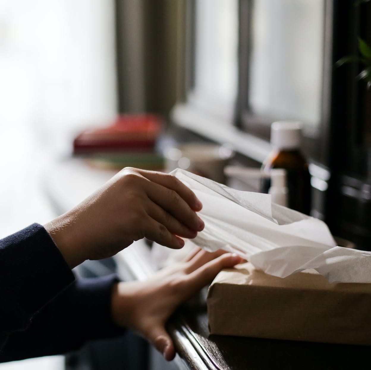 I was experiencing a particularly vicious nasal onslaught when I heard the “Wrrrp!” sound of the last tissue being ejected. I knew I had to make it last, so I shoved it up the sleeve of my snazzy designer sweater for safekeeping.