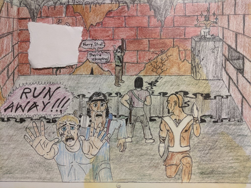 There was also this guy named Stenmin, who wore blades on his hands and he was a monk. There was this guy named Nee-Kro Scout and was mute. Stenmin got polymorphed into a gelatinous cube by a beholder named Iyek. I had so much fun drawing the comic based on this, but you know, people typically just look at the art and don’t read the story, which made me mad. I just wanted to tell the story, and my life changed when I learned to type.