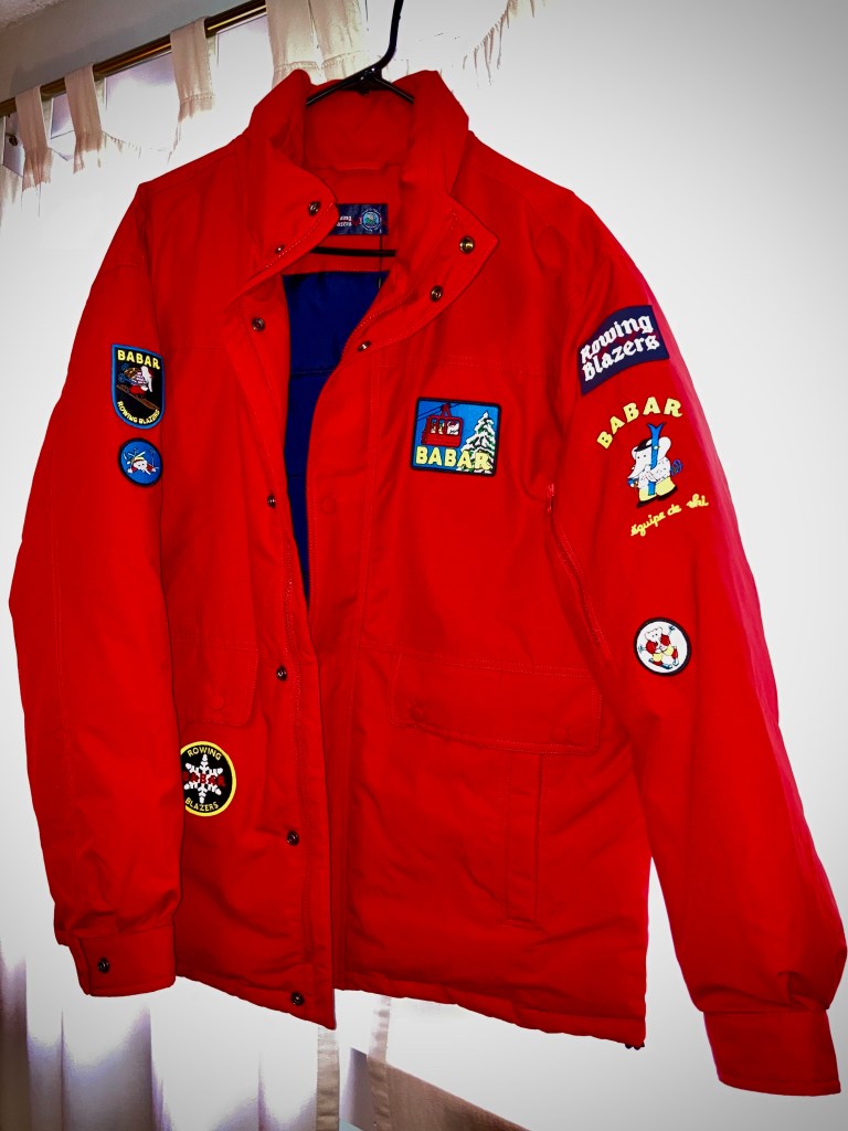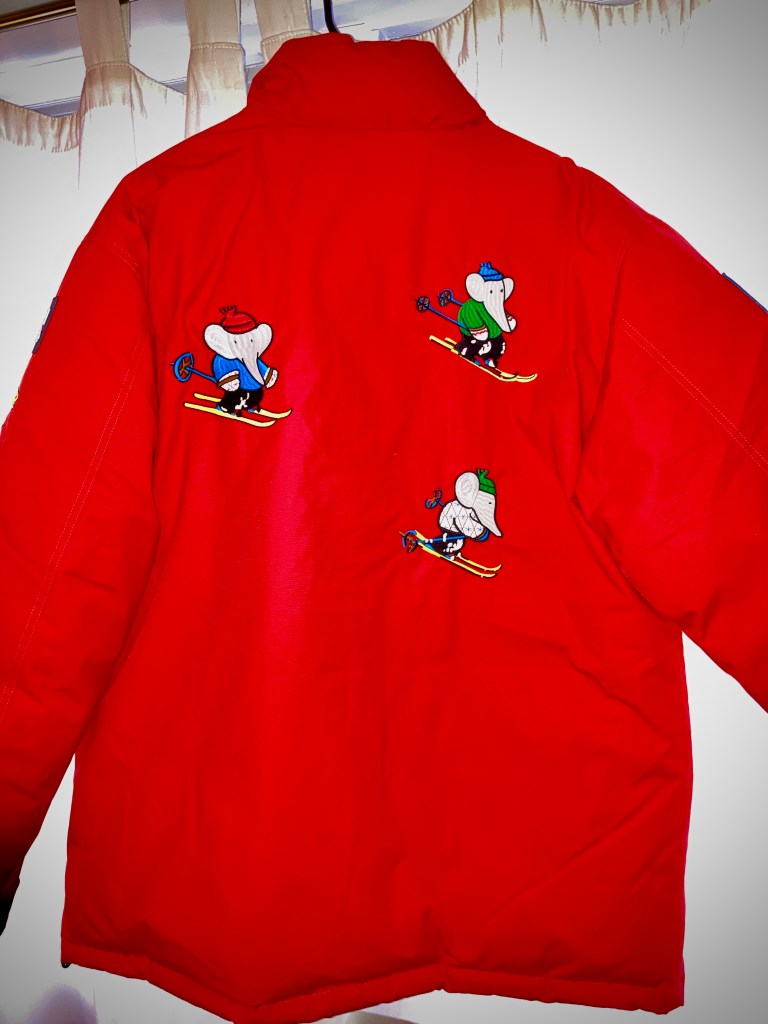 Is that a red ski jacket featuring Babar?